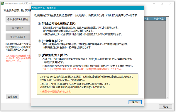 ペットクルーカルテ7用 内税変更ツール