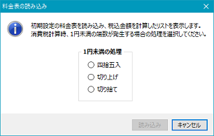 次に内税化の作業を開始します。 まず現在の料金表を読み込み、内税に変換する際の料金を計算します。内税料金の計算時、小数点以下の処理を指定します。