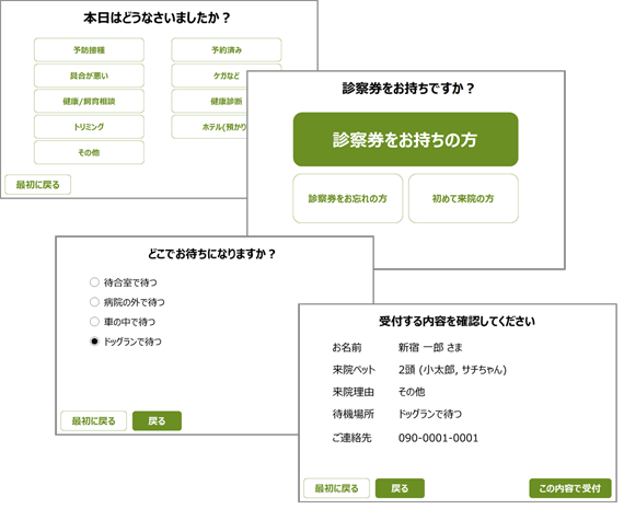今回のリリースでは、新しいサービスである飼い主自身が自ら来院受付を行う機能をリリースしました。