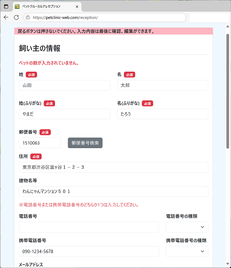 - ペット登録時にふりがな自動入力