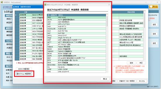 取り込みが可能な検査項目は従来より多い137項目です。 項目に関しては、初期設定の血液検査項目の設定画面から検査リストを表示させることができます。